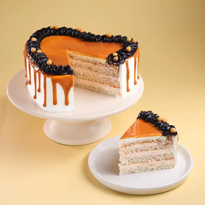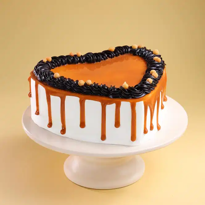 Heart Shaped Butterscotch Cherry Topped Cake